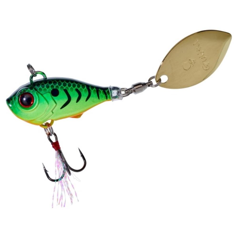 Le Gunki Shocker Vib 18 est un spintail réalisé dans un alliage sans plomb. C'est un leurre de prospection très stable, qui brasse beaucoup d'eau, avec une palette ovale de forme Indiana qui émet des vibrations puissantes. Le Shocker Vib pêche à toutes les vitesses de récupération, il est aussi efficace animé à dandiner sur le fond, notamment pour les perches. Ce leurre Gunki bénéficie de belles finitions, et d'un signal oeil surdimensionné.