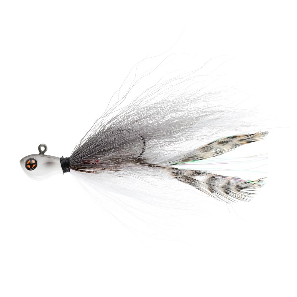 Le R Jig est un Bucktail Jig. Vendu à l'unité. Coloris : NATURAL SHINER. Poids : 21 g. Longs poils de queue de daim + fibres synthétiques ultra-mobiles (Krystal Flash et Flashabou). Hameçon simple MUSTAD ultra-piquant. Efficace en mer comme en eau douce.