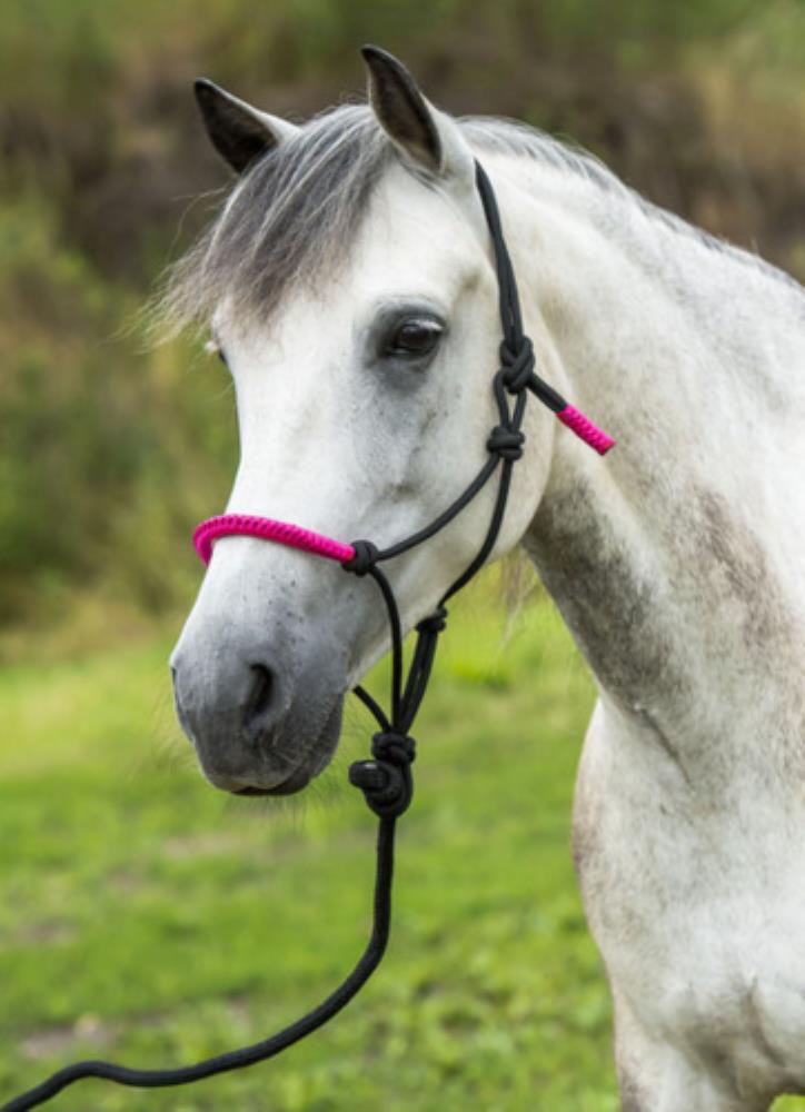 Licol pré-noué en corde adapté à la pratique de l'équitation éthologique pour un contact précis avec pendant de têtière et muserolle doublés corde polypropylène souple, entrelacée anti frottements.Lire la suite