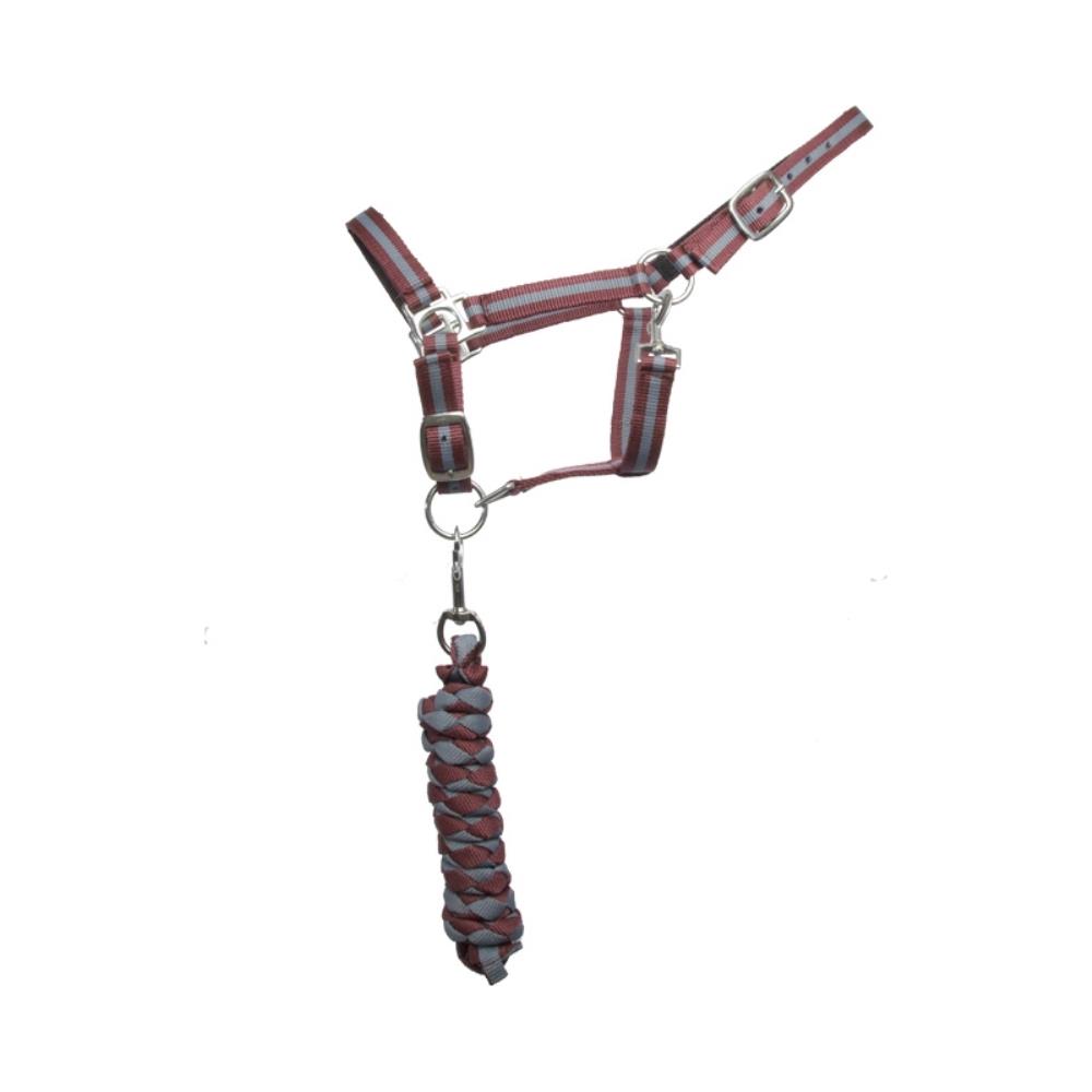 Le licol + la longe T de T bordeaux et gris sont des accessoires indispensables à tous les cavaliers qui souhaitent d'occuper d'un cheval. Il est necessaire pour déplacer le cheval, le panser et le transporter. Pour plus de confort, la têtière et la muserolle ont été doublés en suèdine afin de ne pas blesser le cheval. La longe tressée est facile à nouer, vous pourrez alors l'attacher en toute simplicité.