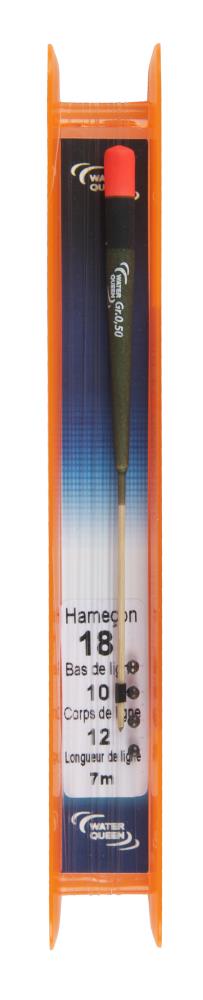 Longueur de corps de ligne : 7 m. Longueur de bas de ligne : 20 cm. Taille hameçon : 16. Diamètre de corps de ligne : 14/100 mm. Diamètre de bas de ligne : 12/100 mm.