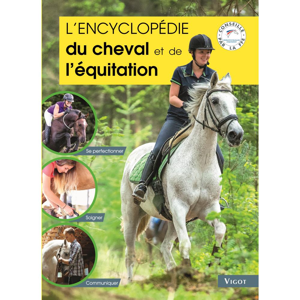 L'ENCYCLOPÉDIE du cheval et de l'équitation. Une encyclopédie complète et passionnante pour se perfectionner à cheval et devenir propriétaire. Le cheval. Son anatomie, les allures, le rôle du pied, les aplombs, les robes, les marques en tête et aux membres, les papiers d'identité, savoir comment il apprend, connaître ses besoins selon son environnement. Les soins, l'alimentation, les maladies. Soigner les petites blessures, les soins périodiques obligatoires, le maréchal-ferrant, toiletter et tresser, présenter en main, les protections, les besoins alimentaires, la digestion, évaluer l'état corporel du cheval, les principales maladies. Le travail à pied. Dresser et sauter à la longe, les longues rênes, l'éthologie, le saut en liberté. Le dressage. Les différents équilibres du cheval, l'échelle de progression, la mise sur la main, les assouplissements latéraux, le travail de deux pistes, les transitions. Le saut d'obstacles. Les exercices de fonctionnement, les combinaisons, les parcours de CSO, l'abord. Le cross. Les débuts en extérieur, s'adapter aux différents profils...