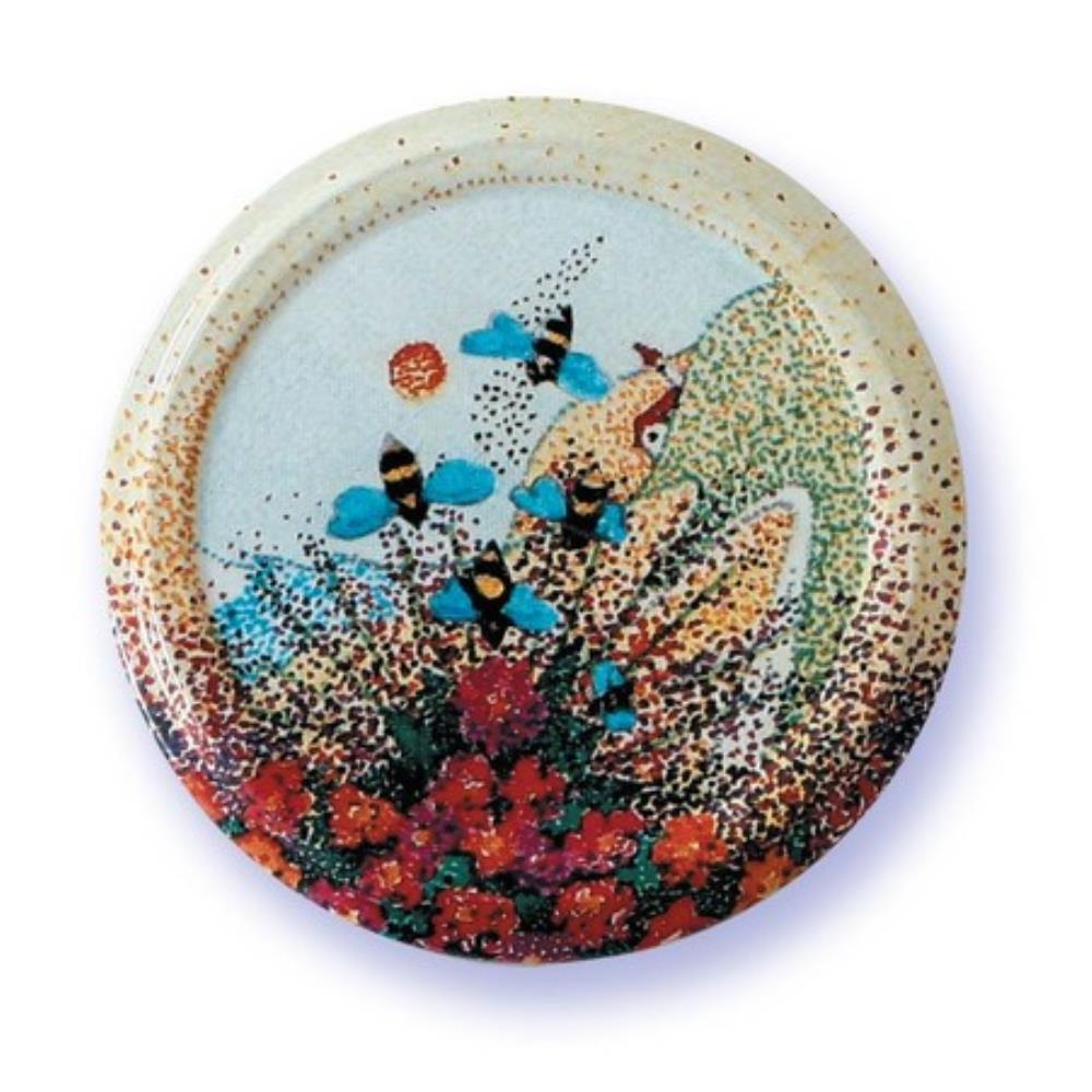 Capsule métallique pot de miel. Décor paysage avec abeilles.