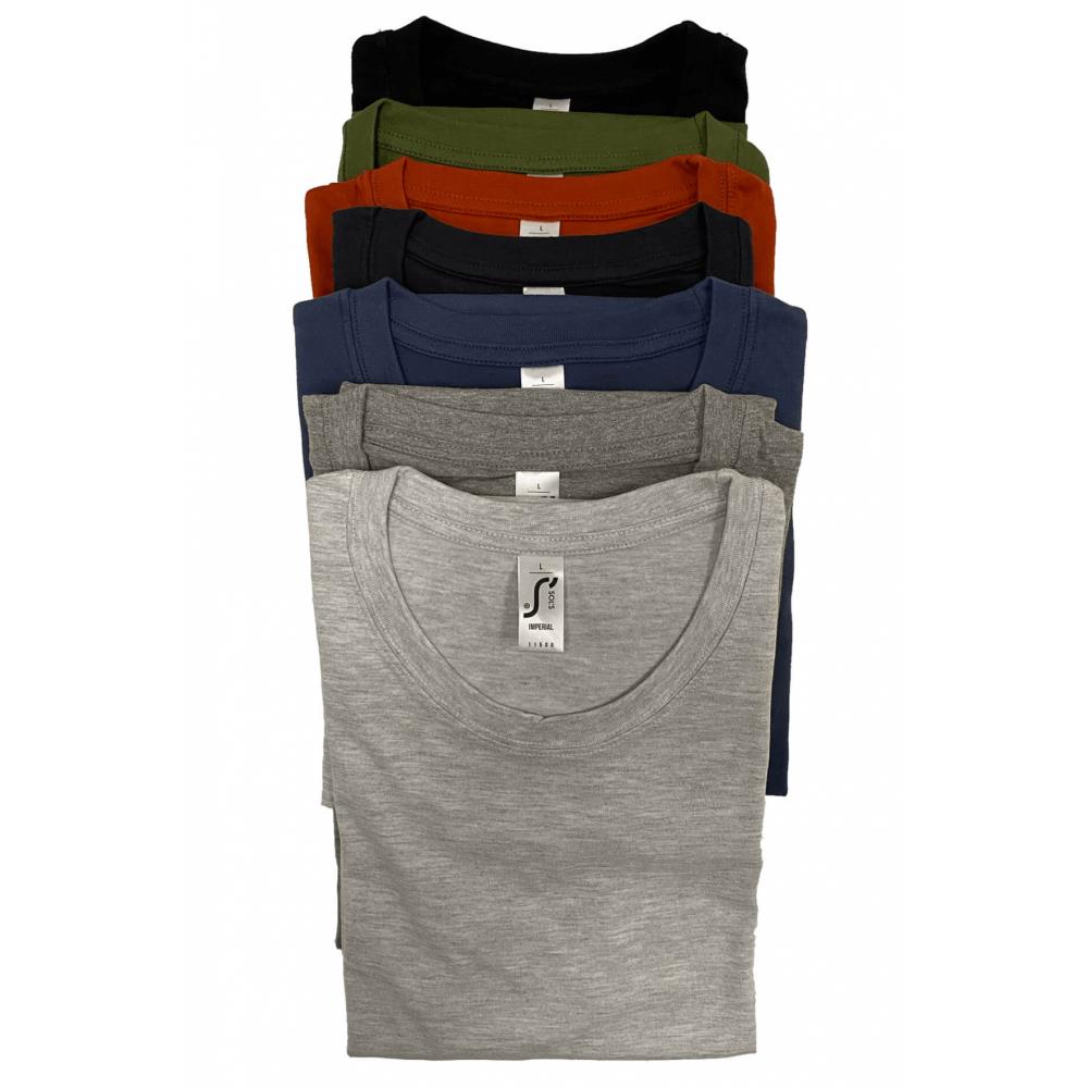 Lot de 7 teeshirts. Composition : 100% coton. Coloris : kaki, olive, marron, sable, noir, orange, terre. Tailles : du S au 2XL.