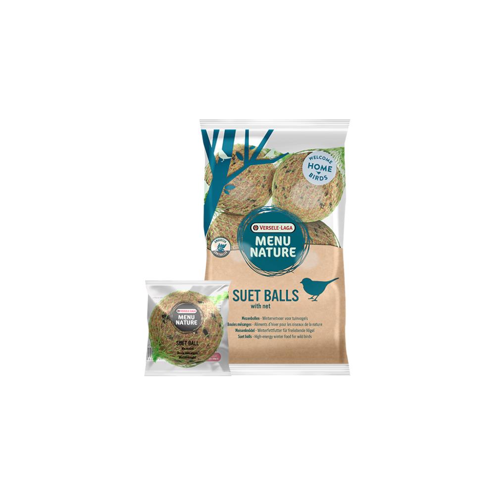 Boules de graisse avec filet. Composition : Sous-produits d'origine végétale, huiles et graisses, céréales, substances minérales. Constituants analytiques : Protéine : 9,5%. Teneur en matières grasses : 24%. Cendres brutes : 3,5%. Cellulose brute : 3%. Lot de 25 boules de graisse. Poids : 6 x 90 g.