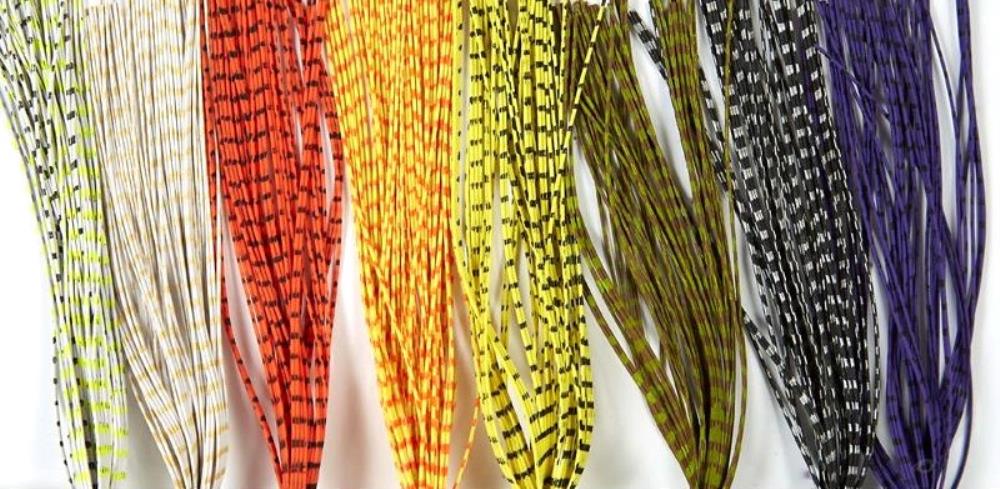 Elastiques ronds zébrés permettant de réaliser des pattes de poppers, streamers et mouches mer particulièrement attractifs.