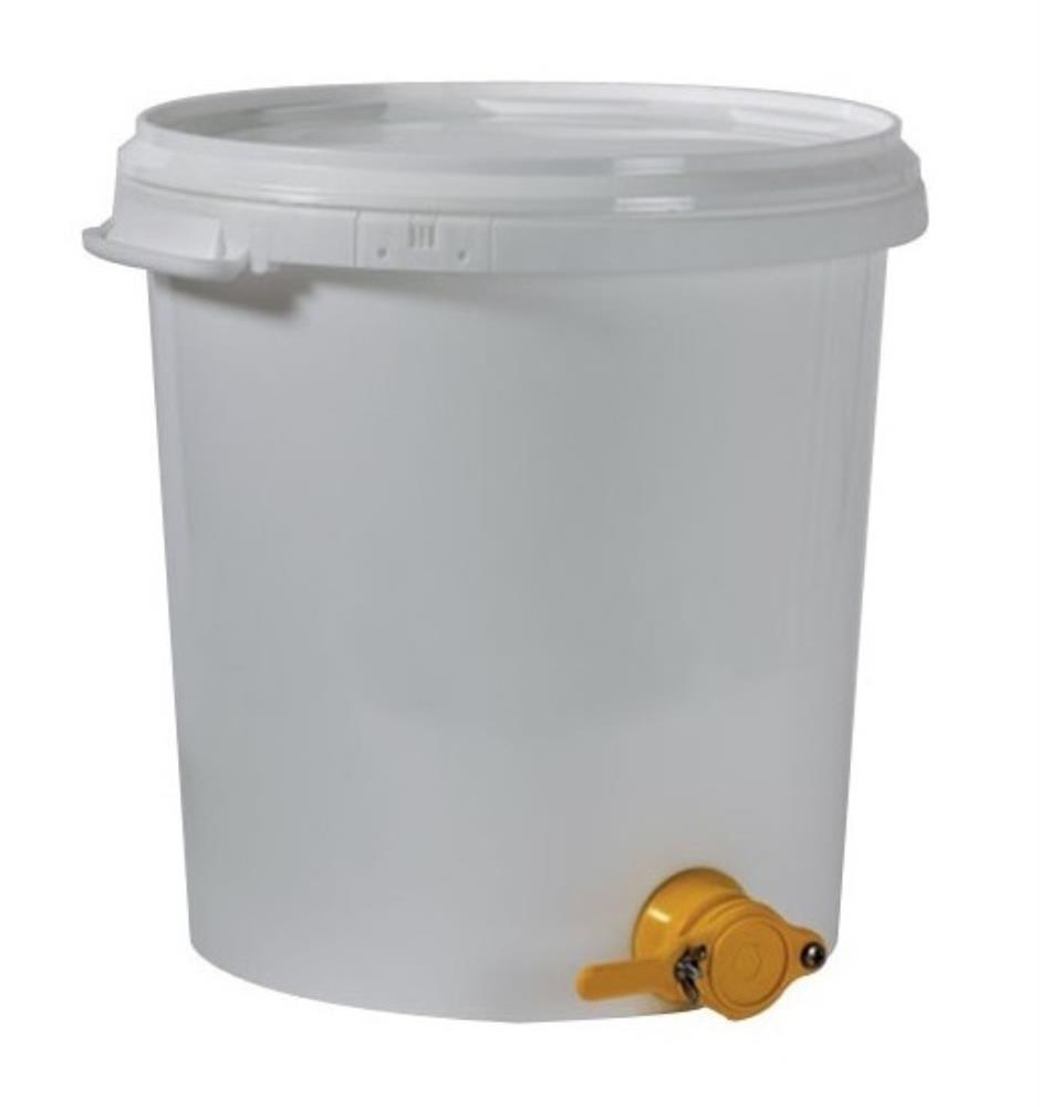 Matériau plastique. Contenance 40kg. Robinet guillotine. Avec 2 poignées et 1 couvercle plastique. Matériel destiné à la pratique de l'apiculture