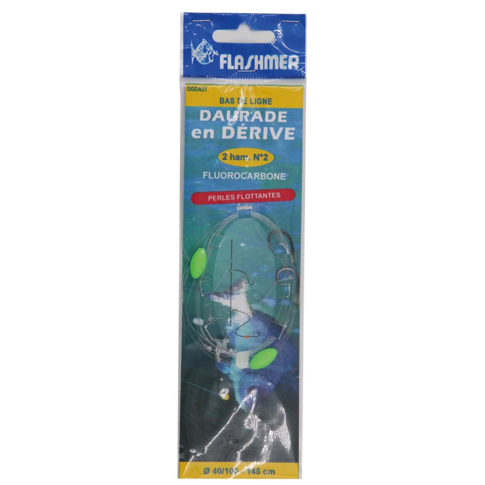 Bas de ligne monté Daurade en dérive, spécial sparidés. Équipé de deux perles flottantes et d'hameçons black nickel renforcés. Ligne 100% Floro.Lire la suite