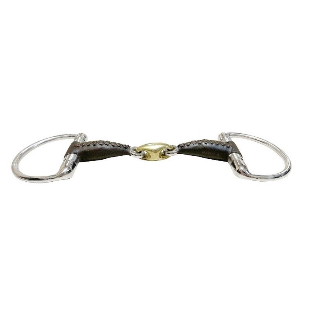 Composition : Inox gainé de cuir et double brisure en German Silver (65% cuivre, 23% zinc, 12% nickel, un alliage décontractant et solide). Taille : 115 à 135cm. Conseil d'utilisation : Embouchure très classique et convient à beaucoup de chevaux sans problématique. Le canon gainé cuir permet d'éviter un contact trop froid dans la bouche du cheval et de lui apporter un peu plus de confort. Conseil d'entretien : Bien rincer le mors après chaque utilisation afin de limiter le dépôt de résidus et d'engendrer un inconfort pour votre cheval. Huiler le cuir avec une huile végétale (Attention : surtout ne pas utiliser d'huile de pied de boeuf ou autres huiles synthétiques) afin de garder un contact souple et agréable pour votre cheval.