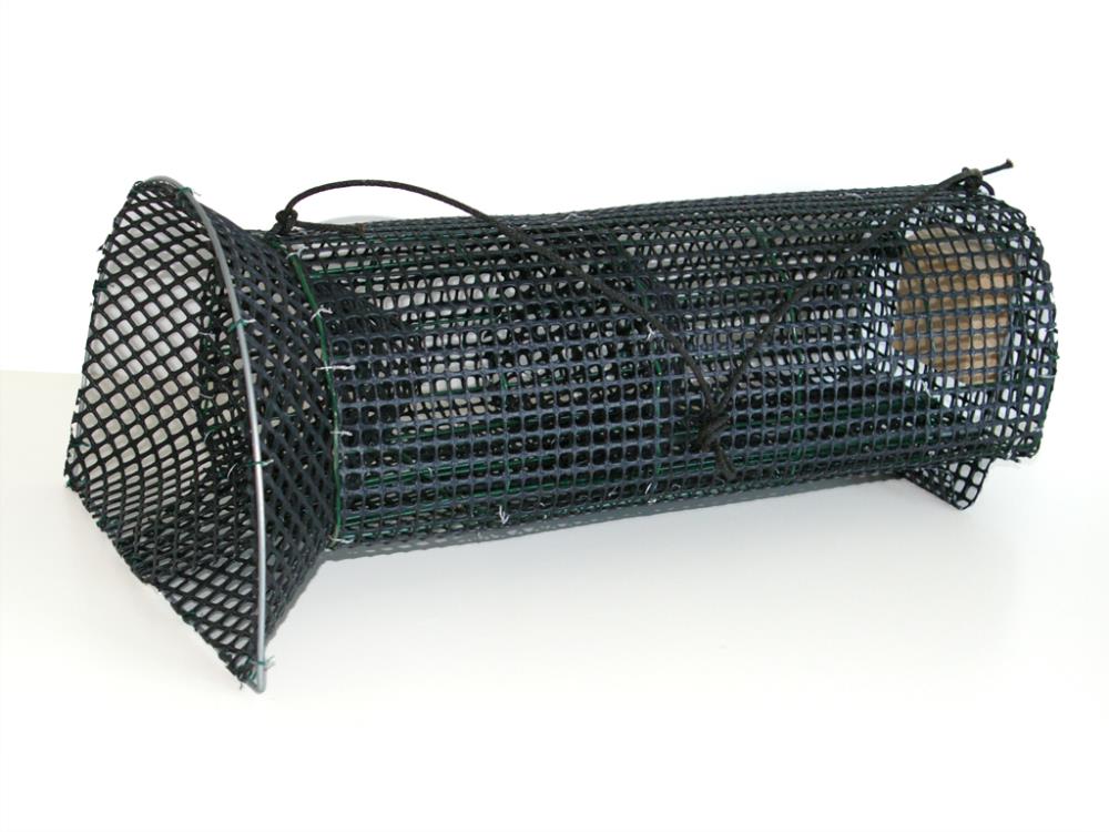 Nasse à anguilles avec goulot intérieur semi-cylindrique.