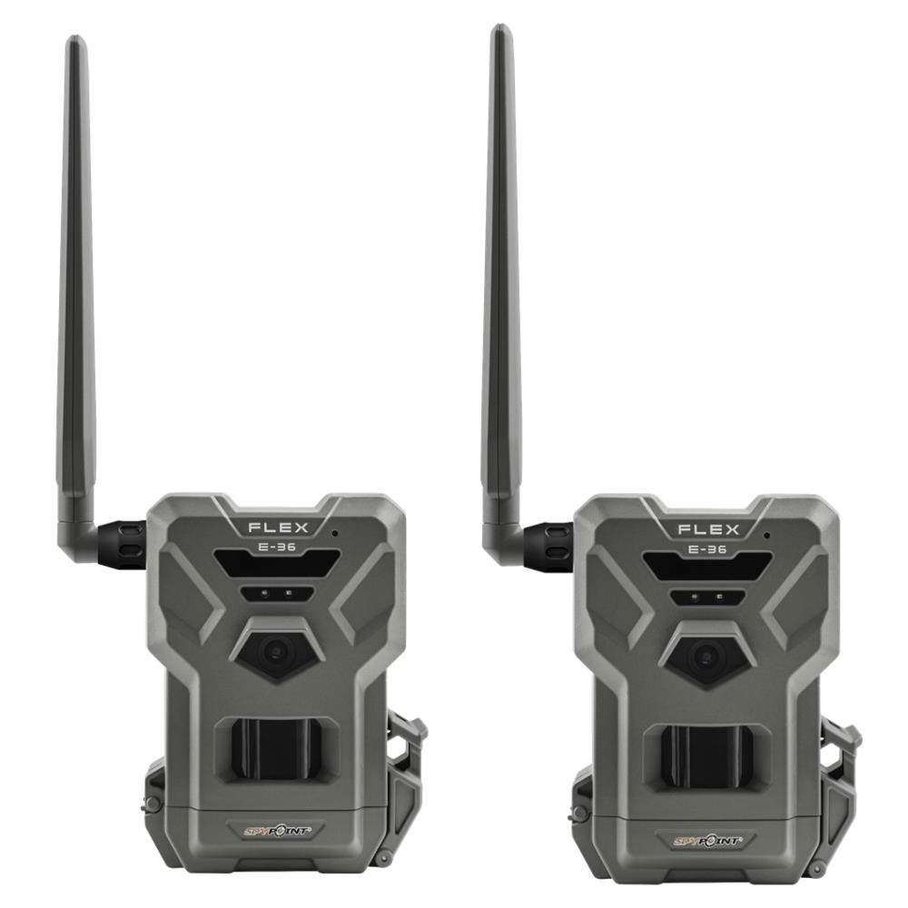 Pack de deux caméras Flex E-36. Réseau LTE. Transmission des vidéos. Caméra entièrement configurable via l'application SPYPOINT. Transmission des photos. Carte SIM Préactivée Incluse. Définition (MP) : 36MP. Mode Time-Lapse+. Impression sur photos : Date, heure, température (°C/°F) et phase de lune. Mode continu. Time-Lapse Mode jusqu'à 3 photos par détection. Type de photo : Couleur de jour, infrarouge de nuit. Vitesse de déclenchement : 0.3 s. Portée du Flash : < 30m (100'). Distance de Détection : 35 m. Modes : Photo et Multi-photos. Nombre de DEL : 4 DEL super puissantes. Durée de la vidéo : 15 secondes. Enregistrement du son. Définition vidéo : 1080p. Exposition : Réglage automatique de l'éclairage infrarouge. Nombre de DEL : 4 DEL super puissantes. Mode de capture : Couleur de jour, infrarouge de nuit. Portée du Flash : < 30m (100'). Distance de détection : < 30m (100'). Vitesse de déclenchement : 0.3 s. Horaire programmable : 7 jours. Carte mémoire : Carte micro SD 2 à 512 Go (non incluse). Prise externe 12V. Bloc-pile LIT-22 (non inclus) ou 8 piles AA alcalines (non incluses). Dimensions : 13 cm L X 10,67 cm H X 7,88 cm P.