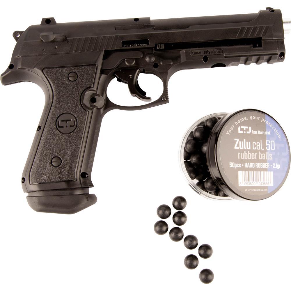 Le pistolet de défense à billes vous permettra de tirer des billes de caoutchouc sur votre agresseur. Ce pistolet de calibre 50 éprouve une puissance de 7,5 joules. Le chargeur du pistolet semi-automatique peut contenir 7 billes en caoutchouc. Le pistolet fonctionne à l'aide de recharges de CO2.