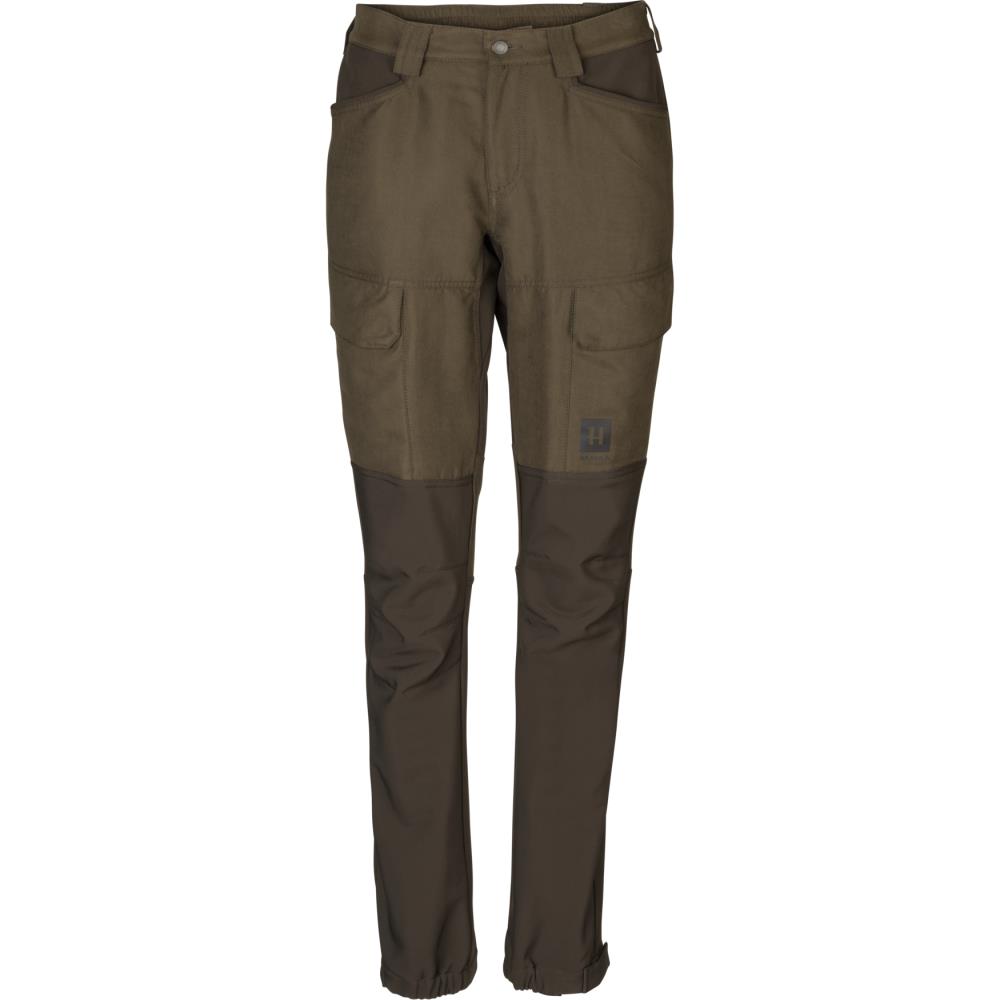Le pantalon Scandinavia pour femme est un pantalon Harkila de coloris kaki et marron, spécialement conçu pour les chasseresses passionnées. Fabriqué à partir d'un mélange de coton et de polyester, ce pantalon est à la fois silencieux et confortable. Il sèche rapidement et présente une coupe active, avec une ceinture élastique et des panneaux extensibles pour une grande liberté de mouvement. Ses caractéristiques pratiques incluent des zips de ventilation, des poches spacieuses sur les cuisses avec fermetures magnétiques silencieuses, et une doublure en polaire légère, offrant un confort exceptionnel pour les activités de plein air.