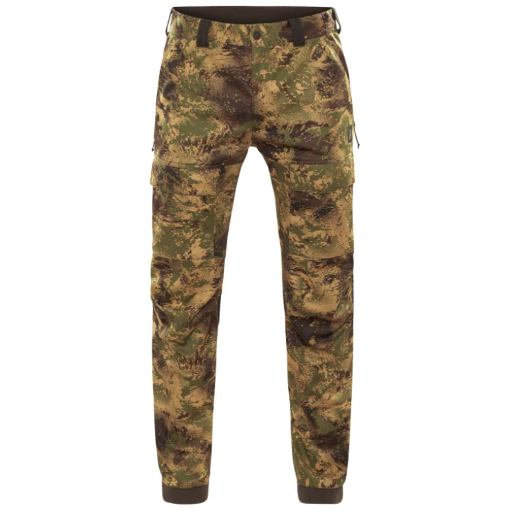 Le pantalon Deer Stalker Light de la marque Harkila est un pantalon de chasse léger de coloris camouflage marron, beige et vert-kaki idéal pour chasser en toute saison. La marque scandinave Harkila est une marque de vêtements et accessoires de chasse de renom. En effet Harkila fait partie des grandes marques dans le milieu de la chasse, la technicité et la qualité des produits des produits développés permettent de résister à toute épreuve. La marque Scandinave développe de nombreux vêtements de chasse tels que : veste, pantalon, pull, chemise, t-shirt mais aussi des accessoires de chasse comme : casquette, bonnet, gant, guêtre, chaussette et également des chaussures de chasse. Cepantalon chasse cintré a été conçu dans un tissu extensible, souple et très silencieux. Il bénéficie d'un traitement efficace contre les insectes, en effet la doublure Tatanex repousse les tiques, les moustiques et autres insectes. Ce pantalon léger possède un tissu en ArcStretch qui a le bénéfice de sécher rapidement, ce qui est un atout pour la chasse active. Idéal pour chasser à l'approche, ce camo à coupe ajustée épouse parfaitement les formes de votre corps pour ne pas mettre en péril votre chasse. Ce pantalon homme Harkila est doté de nombreuse poches disposé pour faciliter votre chasse jusqu'au bout. Tout d'abord, deux grandes poches cargo, ces poches basses se ferment à l'aide d'une fermeture zippée. La poche cargo droite est munie d'un cartouchière intégrée pouvant accueillr quatre balles de grande chasse. Sur la gauche du pantalon se trouve une poche radio ou poche téléphone. Le pantalon d'été est doté du motif camo AXIS MSP qui floute la silhouette de chasseur pour se fondre dans l'environnement peu importe la saison. Conçu pour les chasseurs de grand gibier à l'approche et à l'affût il pourra également servir à chasser le petit gibier au poste. Lefuseau pour homme est disponible en grandes tailles puisqu'il existe en taille 40, taille 42, taille 44, taille 46, taille 48, taille 50 et taille 52.
