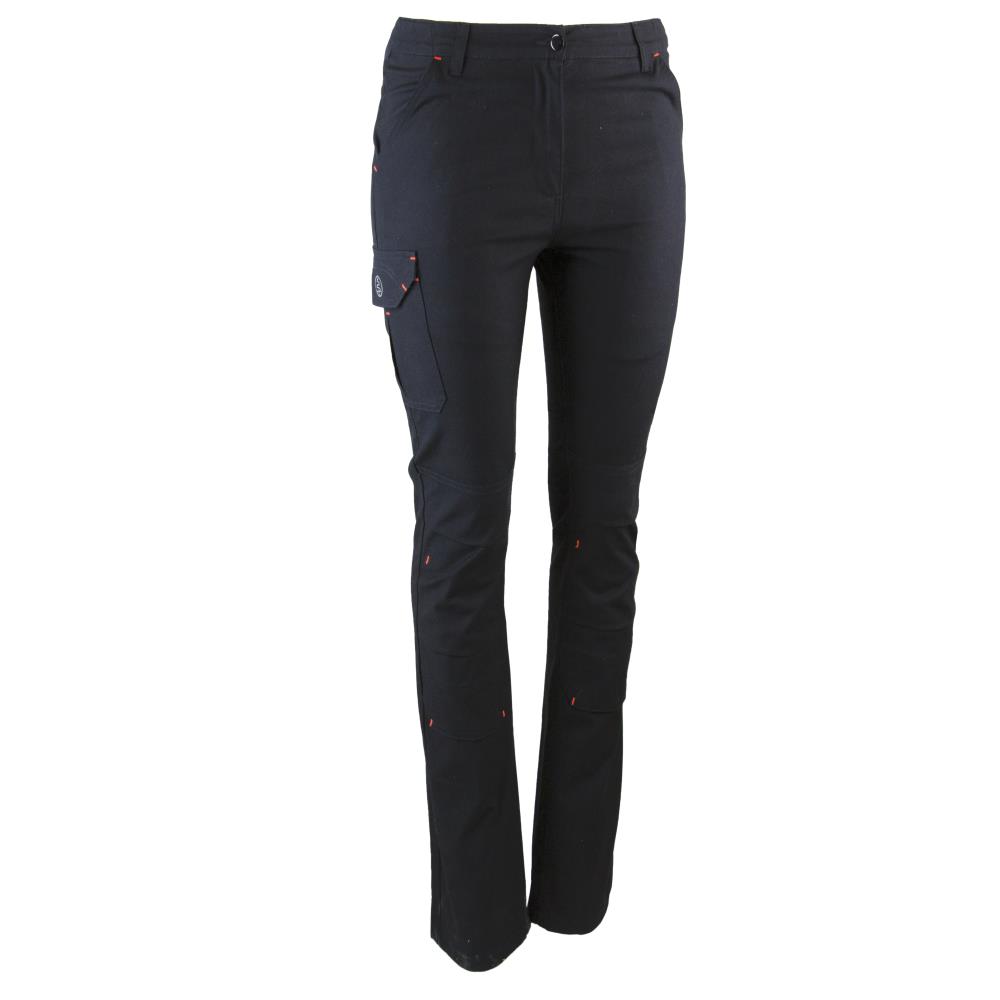 Le pantalon stretch femme Souplesse de la marque LMA et un pantalon pour femme de coloris noir avec ceinture élastiquée sur les côtés et 5 larges passants. Le pantalon dispose également de deux poches italiennes avec en plus, à droite, au porté, une poche cuisse à soufflet central et rabat brodé fermé par bande auto-agrippante. Le pantalon dispose aussi de deux poches genouillères 1 position. Dans le dos du pantalon on retrouve un réhausse et deux poches plaquées avec points d'arrêts contrastants.