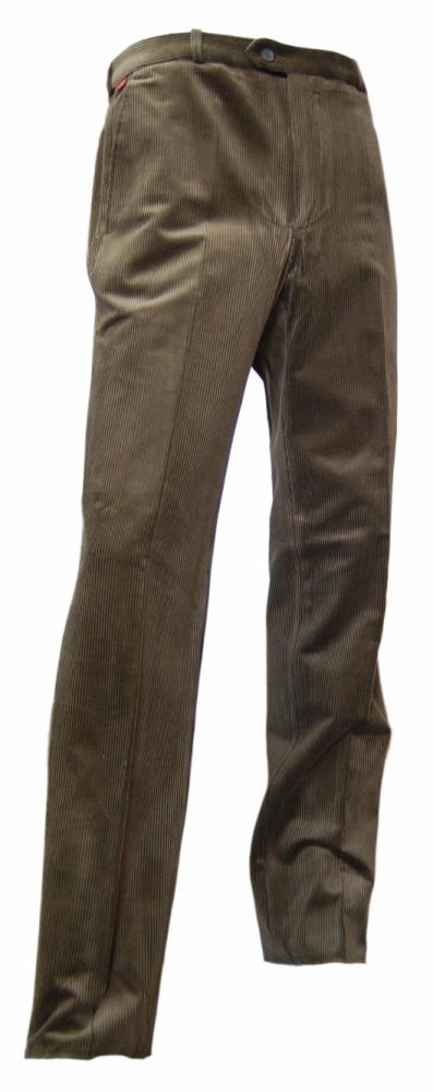 Pantalon velours côtelé extensible avec une ceinture doublée anglaise extensible, 2 poches italiennes et 1 poche dos à rabat fermé par bouton.