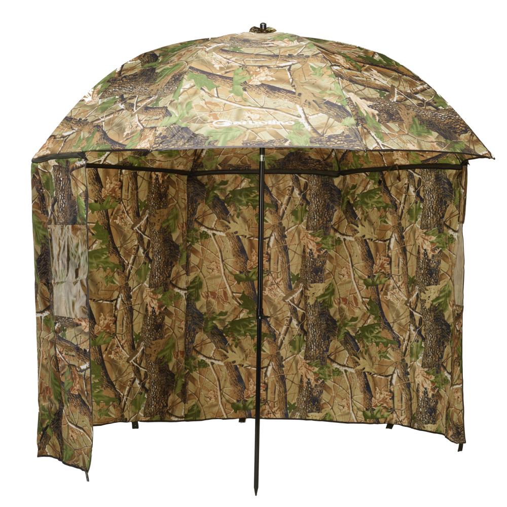 Ce parapluie de pêche est idéal pour vos sessions de coup ou de carpodrome au bord de l'eau, il se transforme rapidement en tente grâce à ses extensions latérales.