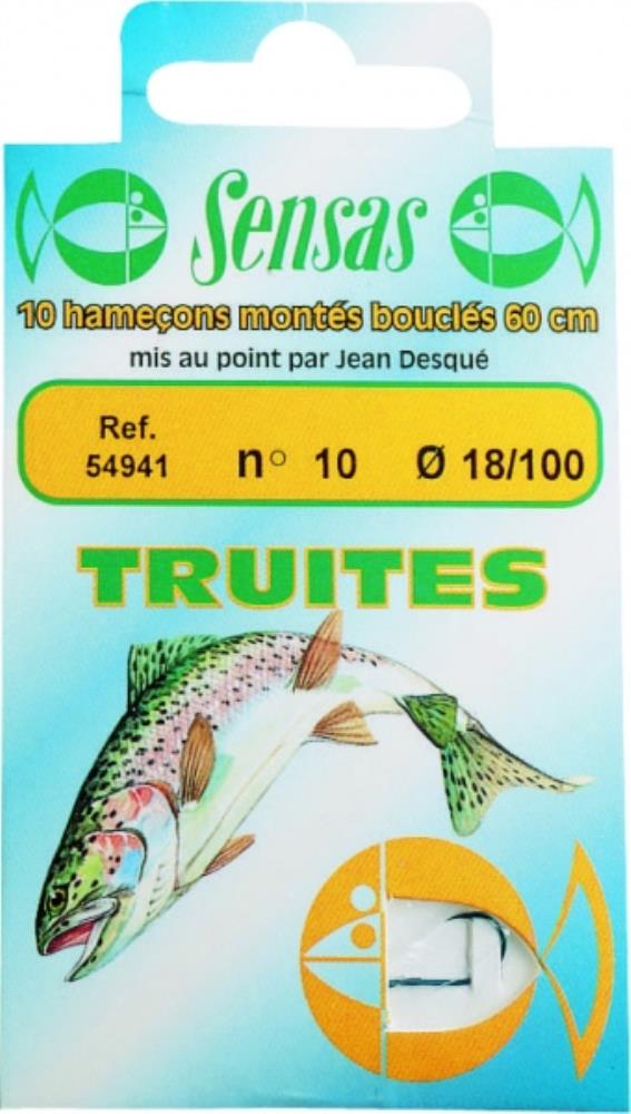 Les hameçons truite, montés ou non montés, doivent être fins de fer, à palette, et avoir un bon piquant. A coté du célèbre hameçon truite «bleu renversé » pour la pêche au toc, il existe d’autres formes d’hameçons pour la pêche de la truite aux appâts naturels, à la teigne ou au ver de terreau.