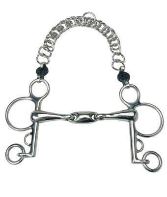 Ce mors a un effet de levier, il agit sur l'équilibre du cheval. La double brisure apporte du confort au cheval en épouvant la forme de sa langue. Ce mors peut être utilisé avec des alliances ou deux paires de rênes.Lire la suite