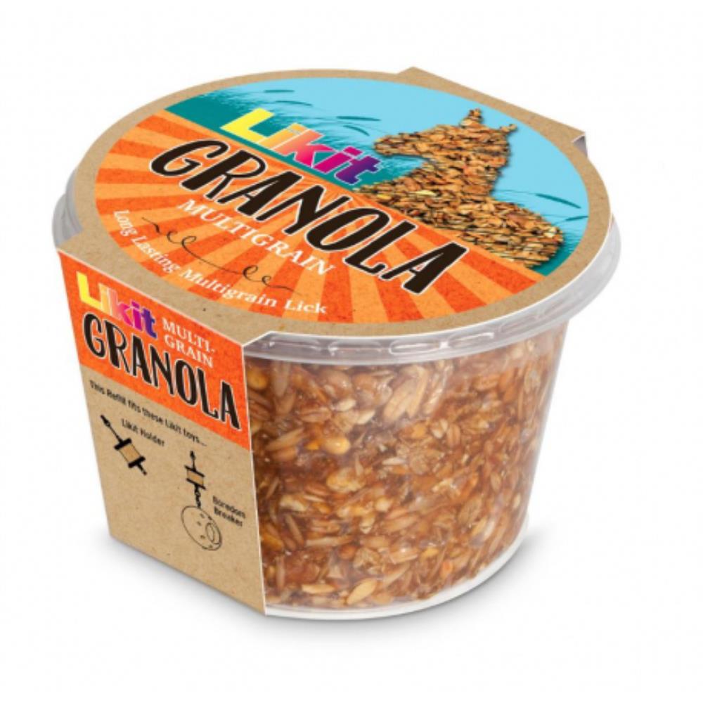 Le Likit Granola est une pierre à lécher savoureuse composée de multiples graines. Très appréciée par les chevaux et les poneys, cette recharge pour le Support Likit et le Boredom breaker Likit a une formulation très dure qui permet de prolonger sa durée même accroché dans le box d'un gourmand ! Amusante et gourmande, la pierre à lécher Likit Granola contient du maïs, de l'avoine, du blé et de l'orge. Son emballage recyclable est facile à retirer et garantit un démoulage rapide du Likit Granola.