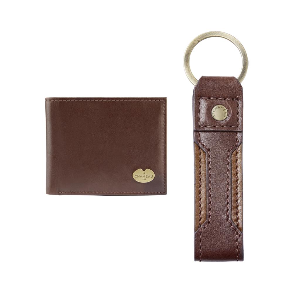 Cet ensemble Le Chameau est composé d'un portefeuille ainsi que d'un porte-clés en cuir. Le portefeuille en cuir Le Chameau est compact. Il est entièrement composé de cuir avec une doublure en toile. On y retrouvera 3 compartiments pour les cartes, 2 emplacements pour les cartes et 1 pour les billets. Un logo Le Chameau en laiton orne le devant de ce portefeuille. Le porte-clés quand à lui est également composé de cuir ainsi qu'un anneau porte-clés en laiton et un logo Le Chameau en laiton également. Ce porte-clés dispose d'une attache rapide à la ceinture.