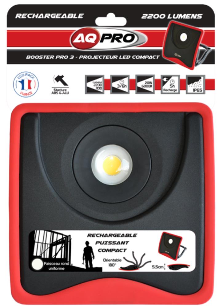 Autonomie : 3h/6h. Technologie : LED 20W. 20,5*20,5*6,5cm