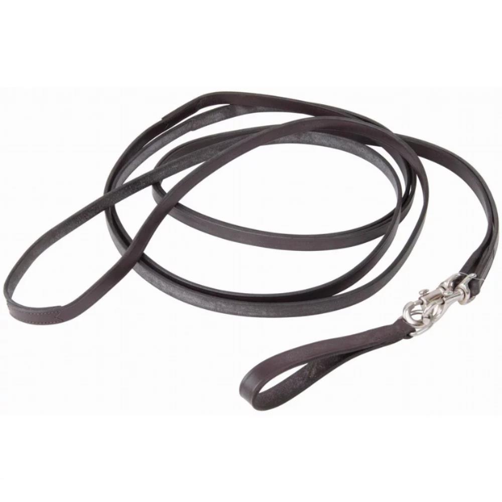 Les renes allemandes sangle cheval de T de T sont conçues pour corriger une encolure trop haute ou mal orientée. Elles sont utilisées en conjonction avec deux paires de rênes : les rênes de bridon, qui agissent directement sur le mors, et les rênes allemandes, qui passent à travers le mors et se fixent à la sangle. Fabriquées entièrement en cuir, ces rênes sont équipées d'un système d'attache avec mousqueton. De plus, une boucle d'attache de sangle est prévue pour les sangles sans D d'attache.