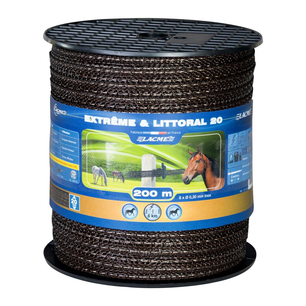 Ce ruban Extrême et Littoral pour chevaux est un ruban spécialement conçu pour les conditions extrêmes (atmosphères salines et zones ventées). Il possède des conducteurs groupés anticoupure et très grosse section. Le support est renforcé. Il est idéal pour les clôtures permanentes et pour les longues distances.