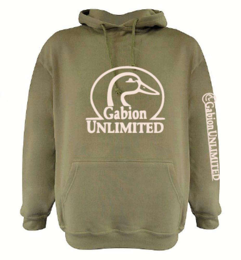Sweat à capuche avec logo de la marque Gabion unlimited sur le devant.