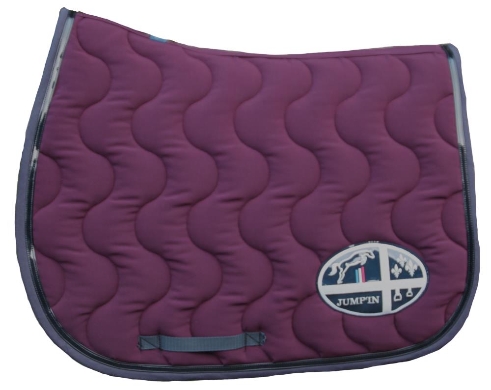 Tapis de selle muni d'une doublure en nid d'abeille pour une meilleure absorption de la transpiration. Orné du logo Jump In d'un côté et écusson de l'autre.