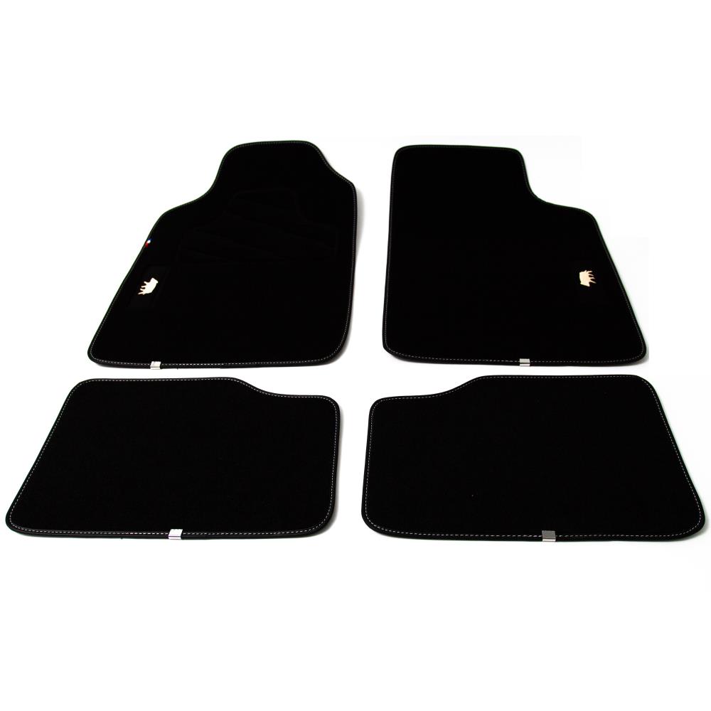 2 tapis avant, 2 tapis arrières. Composition : moquette épaisse (650g/m²).