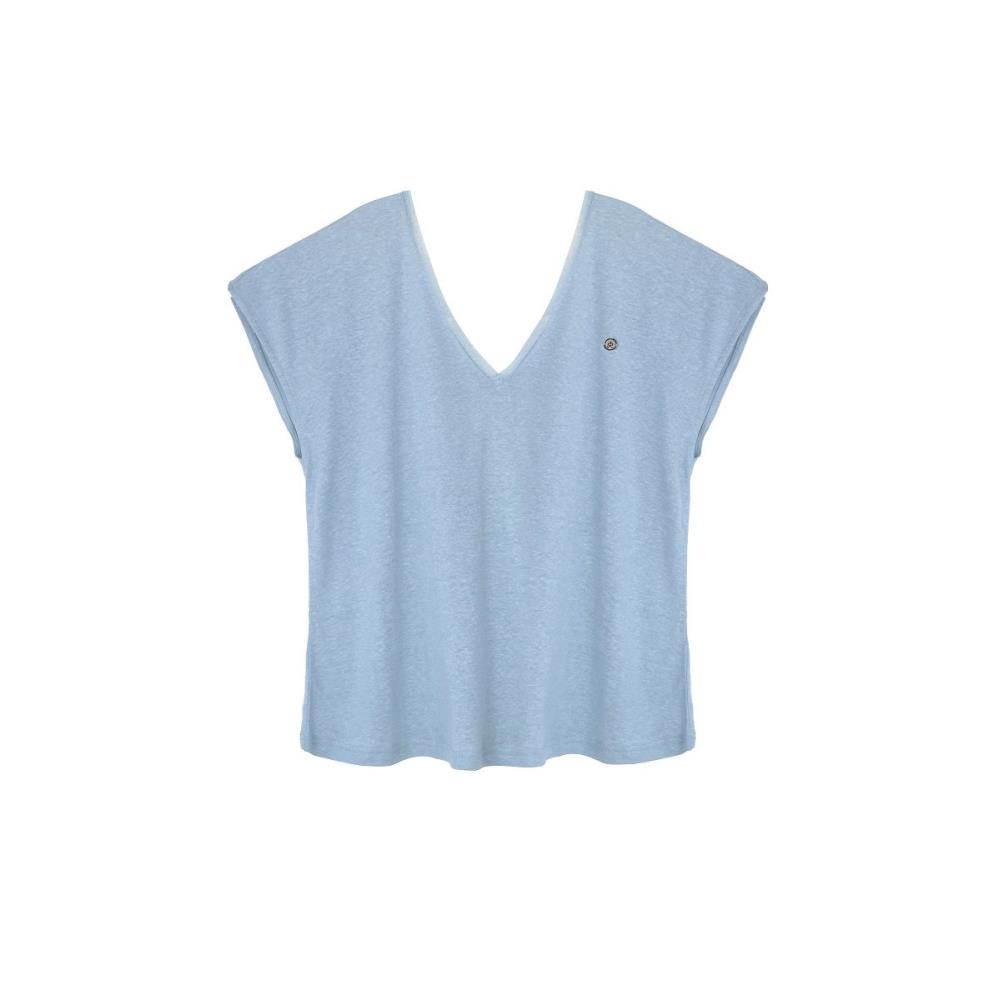 Le tee-shirt léger TARA bleu de la marque HARCOUR est une pièce simple de votre garde robe en été. Ses manches courtes et son col en V sont parfaits pour un style décontracté et confortable. C'est le tee-shirt idéal lors des températures chaudes. Très léger, c'est le tee-shirt idéal pour monter à cheval ou à porter au quotidien, son mélange de lin et modal est naturel et noble. C'est une matière idéale pour les journées d'été. Ce haut dispose d'un joli biais sur le contour du col. Il se mariera très bien avec un jean aussi !