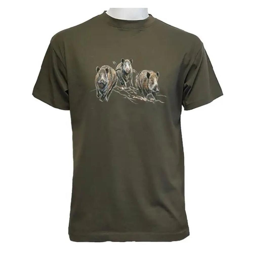 Le tee-shirt Harde Sanglier est un tee-shirt à manches courtes très confortable de coloris kaki. Il sera idéal pour les chasseurs en période estivale. Idée cadeau pour faire plaisir ou se faire plaisir, le tee-shirt est orné d'un joli dessin de sangliers.
