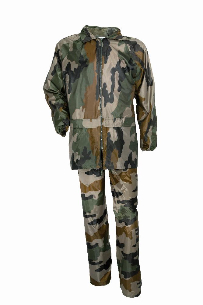 Composition : 100% polyester enduit PVC, coutures étanches. Tailles : M au 3XL. Coloris : Camouflage.