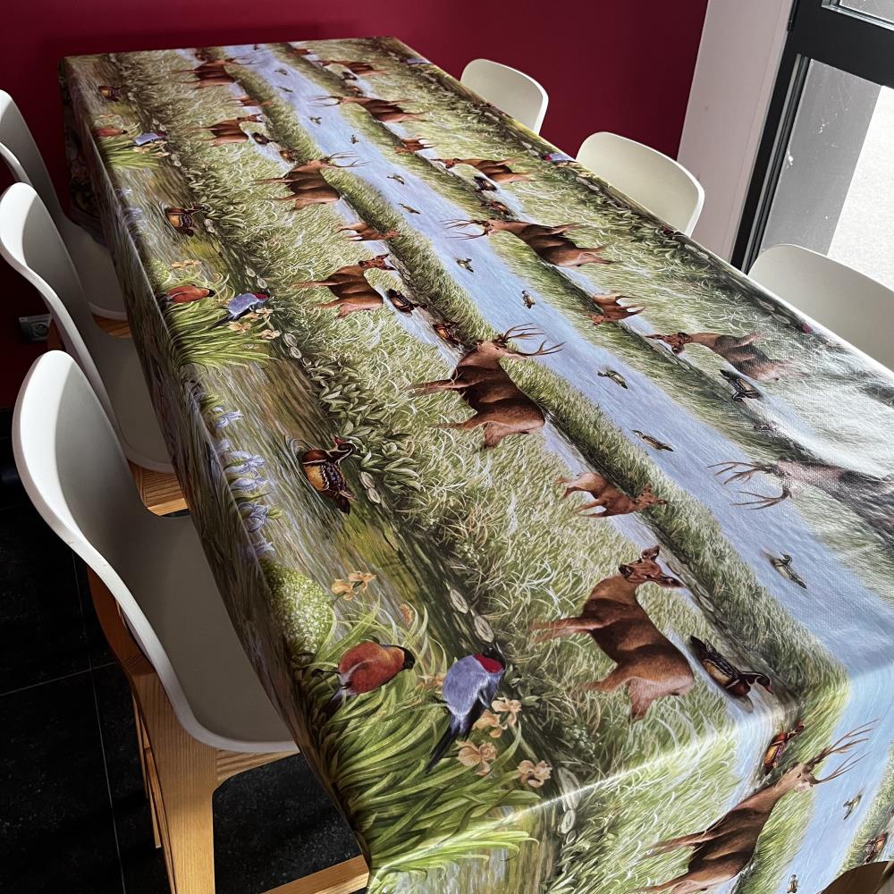 Plongez votre intérieur dans une ambiance naturelle et élégante avec notre toile cirée. Ornée de magnifiques motifs de cerfs majestueux, cette toile est l'élément parfait pour apporter une touche de charme rustique à votre décoration.