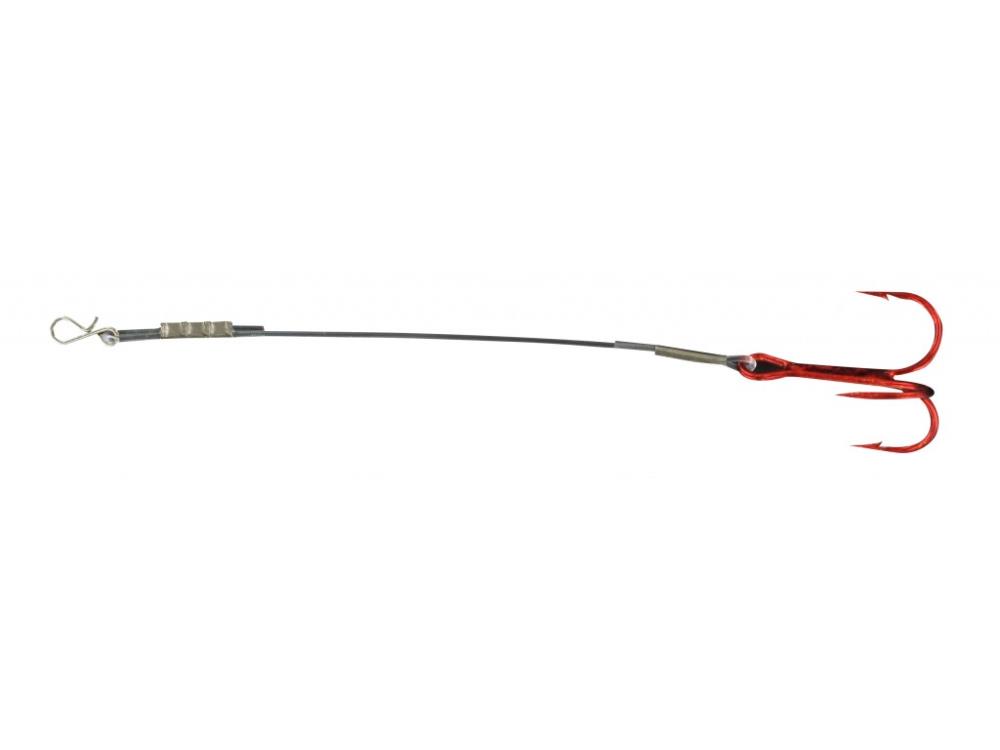 Hameçon triple rouge monté sur un Fluorocarbon muni d’une agrafe. Ce Trailer ou Stinger est conçu pour se clipper sur les têtes plombées et autres montures a leurres souples.Il augmentera considérablement vos chances au ferrage de la moindre touche. Idéal sur les poissons les plus délicats les jours ou le nombre de touches ratées et décrochées sont trop importantes.