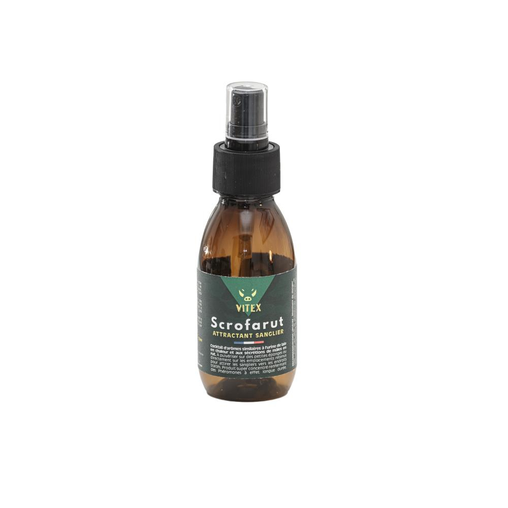 Ce coktail d'arômes Scrofarut est un coktail similaire à l'urine de laie en chaleur et aux sécrétions de mâles en rut. L'odeur attire fortement les sangliers. Ce produit super concentré renferme des Phéromones possédant un effet longue durée.